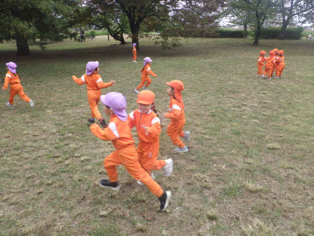 広い芝生でみんなで追いかけっこ!待て待て~!