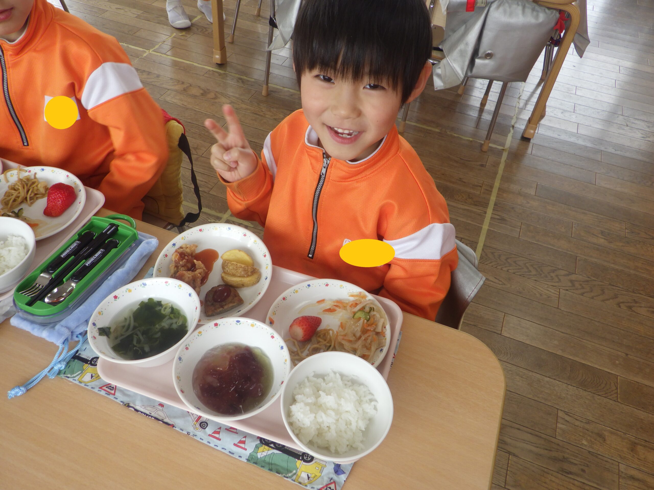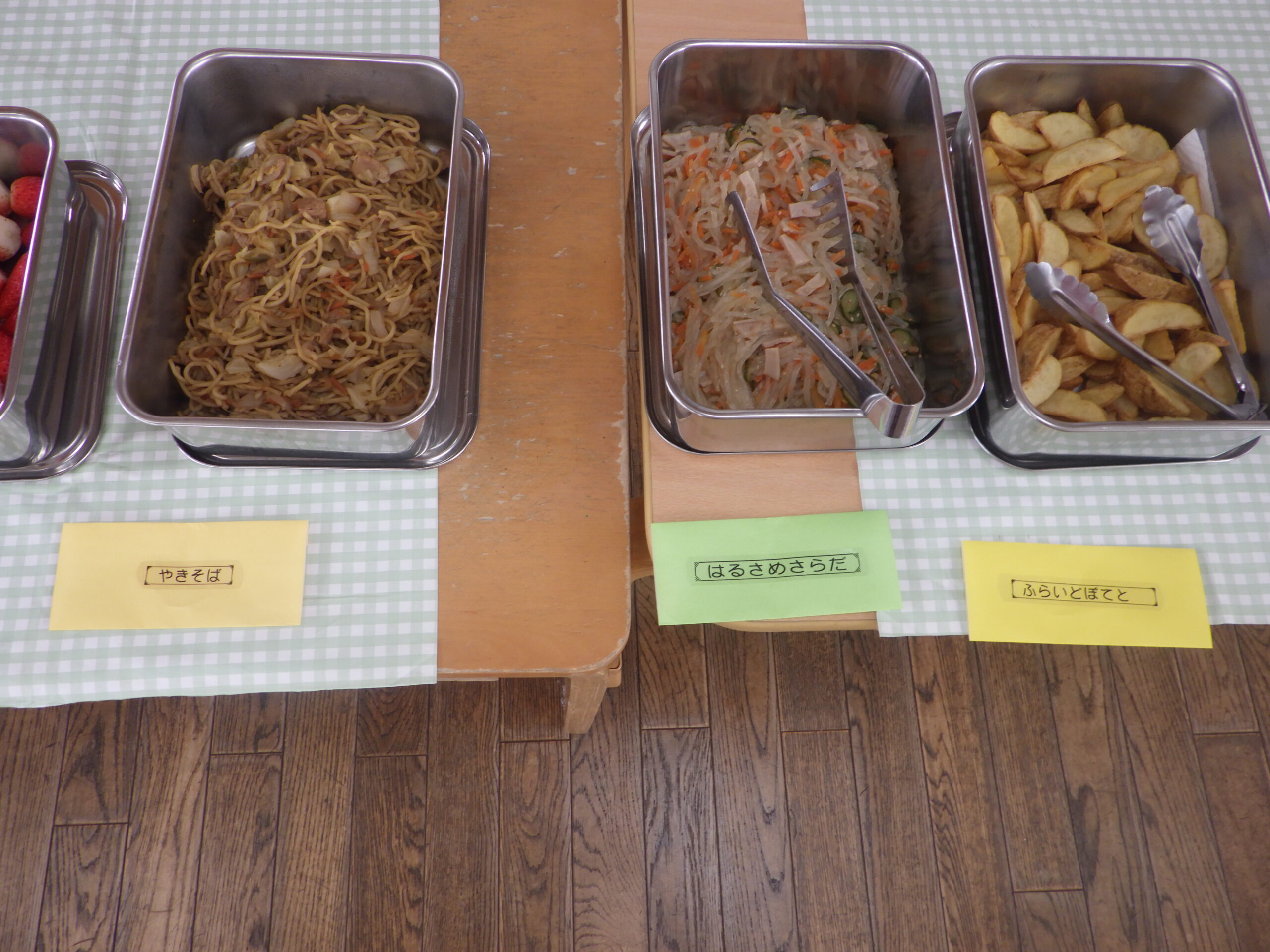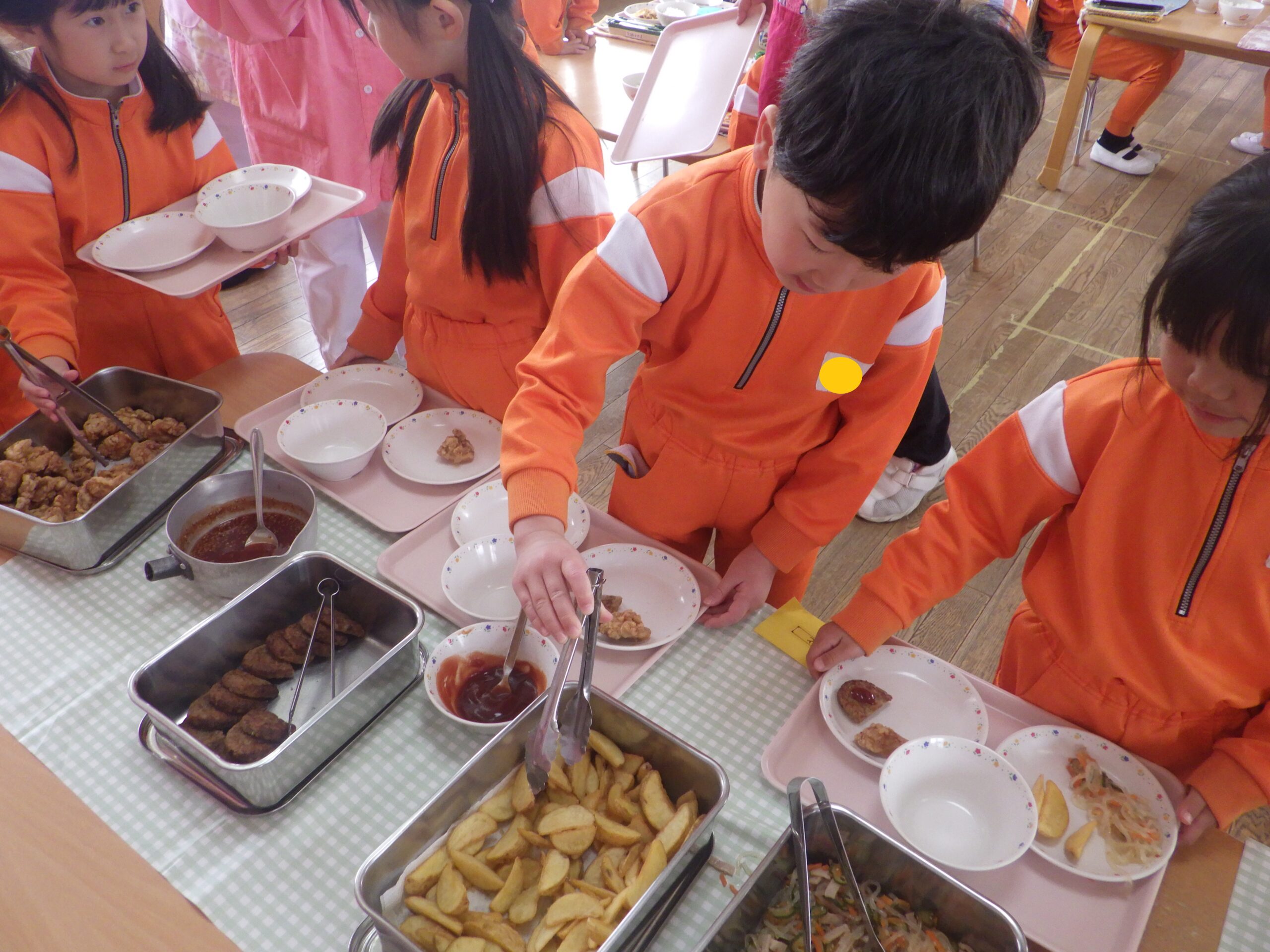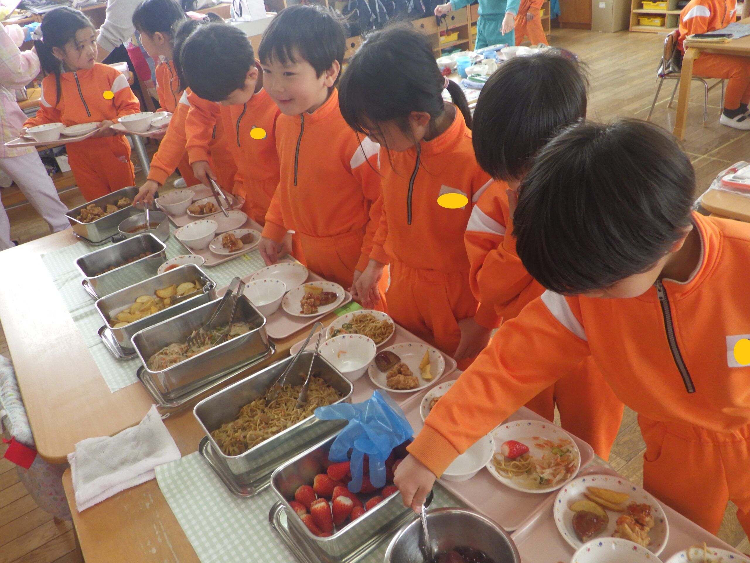 卒園を前に、年長組さんがバイキング給食を楽しみました!ずらーっと並んだメニューを見て大盛り上がりでした。おいしい明円ひかり園の給食をいつまでも覚えていてね。